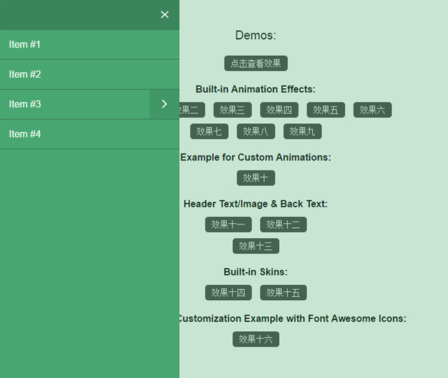 多个jQuery网站侧边栏隐藏展开导航菜单特效,里面总共有十几种效果切换,效果非常棒。