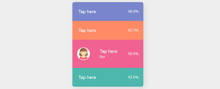 这是一款带头像的CSS3动画手风琴菜单代码,鼠标悬停个人信息展开显示效果。