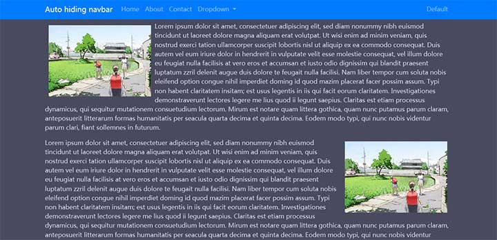 分享一款jQuery基于Bootstrap顶部浮动导航菜单代码,网页向下滚动时自动隐藏,往上滚动或滚动到底部又会自动显示出来。