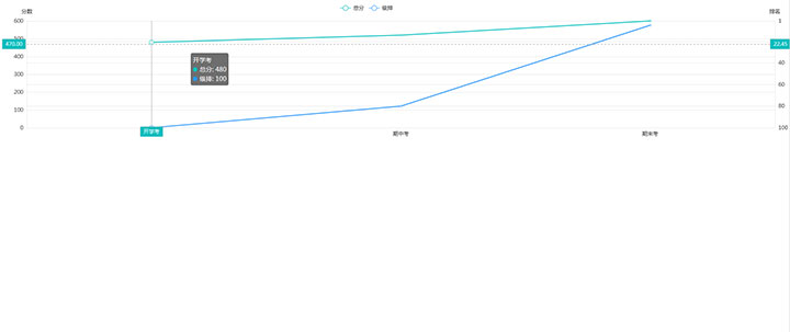 这是一款基于vue.js+echarts制作的考试总分和排名折线图统计代码,高考分数折线图。