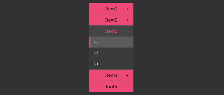 一款简单实用的jQuery垂直手风琴折叠下拉菜单代码,点击可以一级菜单可收缩展开二级子菜单,而且还有过渡动画效果。