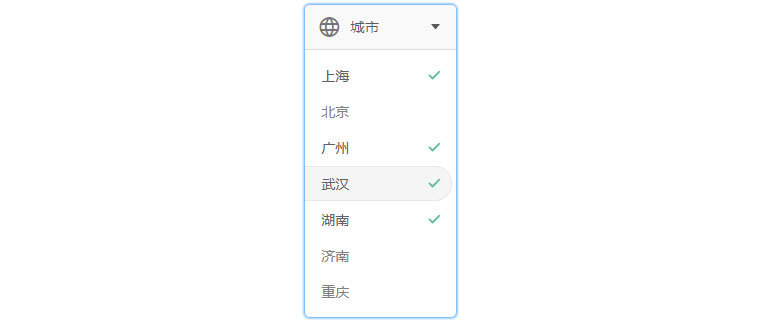 一款支持多选的js+css3下拉城市菜单选择代码,圆角下拉框样式,点击滑动展开收缩城市菜单,不限于城市选择,也适用于其它分类选择多选功能。