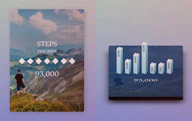 CSS3 3D运动步数统计样式代码是一款鼠标移入的时候显示柱状图特效。