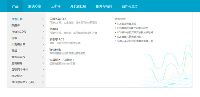 阿里云导航菜单
