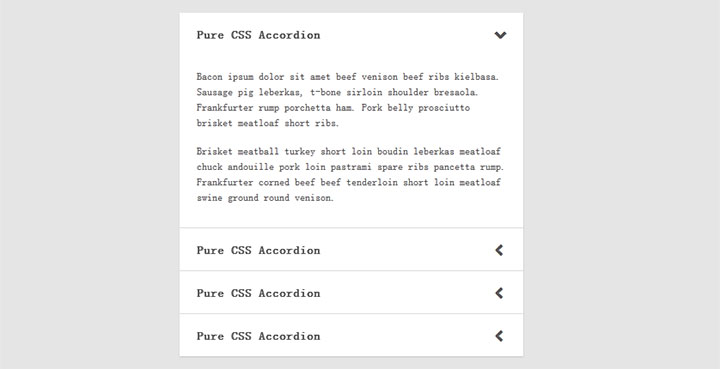 简洁的CSS3滑动手风琴切换特效是一款基于font-awesome.css实现的网页手风琴菜单特效,切换时的箭头指向效果相当不错。