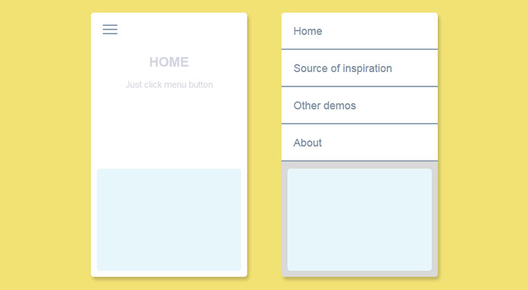 jQuery+html5实现的汉堡包图标点击展开菜单列表项动画特效,再点击列表项链接切换到相应内容。