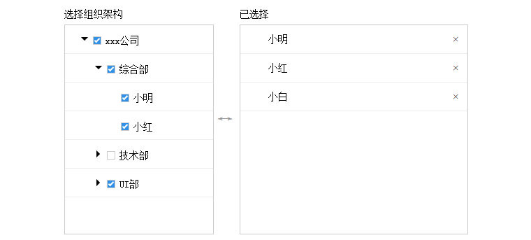 简单实用的一款JS树形结构下拉列表菜单选择代码,树形结构公司组织架构,可以按部门选择人员或自定义选择。