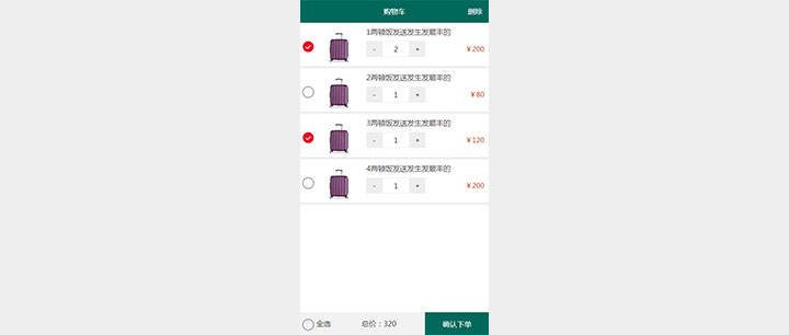 一款十分简洁的jQuery手机购物车结算页面代码,支持全选、单选、删除商品和计算商品总价等功能。