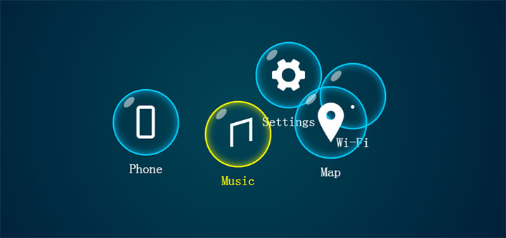 一款很有质感的HTML5 SVG+CSS3旋转气泡图标导航菜单特效,点击图标高亮变色,还有旋转动画特效。