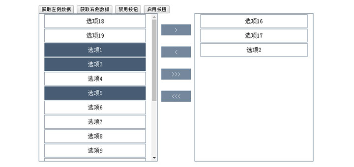 jQuery双向列表左右移动选择框代码,可单选或多选或全部移动选项,还可以分别获取左右两个选择框的列表选项值。