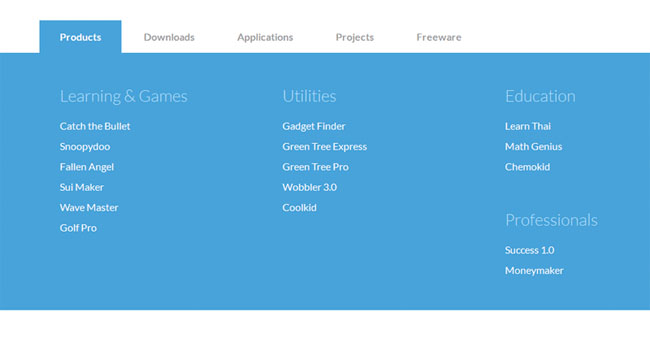 jQuery宽屏通栏下拉菜单导航代码是一款仿微软的蓝色大气全屏网站导航菜单特效。