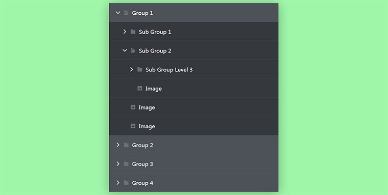 这是一款通过将不同的子菜单进行分组,制作出扁平风格多级菜单效果的jQuery垂直手风琴多级下拉菜单代码。