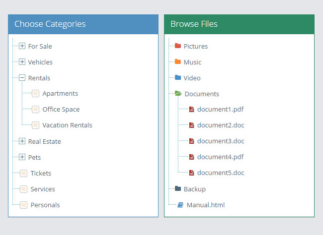 一款jQuery网页树形结构树菜单代码特效,内含两种效果,是在网页设计中必不可少的tree树形结构菜单,尤其是在后台管理模板经常用得到。