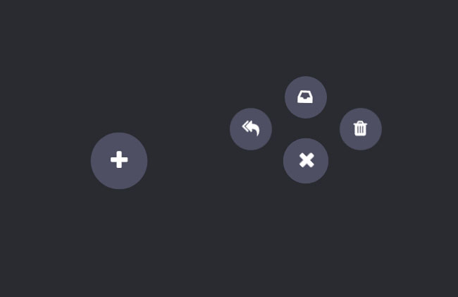 一款jQuery液态式手机端环形按钮导航菜单代码,当用户点击主按钮时,按钮会像液体一样变形,并分离出3个子菜单按钮。除了手机网站上使用,电脑网页也可以用哦。