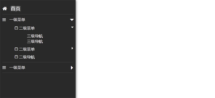 一款黑色风格的jQuery左侧固定多级导航下拉菜单代码,默认固定在网站左侧,带有简易的小图标,点击展开二级三级子菜单。