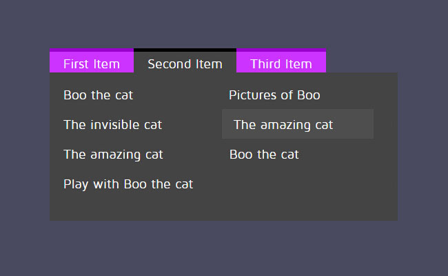 jQuery大型网站下拉菜单booNavigation插件是一款可以制作3列大型下拉菜单,并带有平滑过渡效果,以及鼠标滑过菜单项时的动画效果。